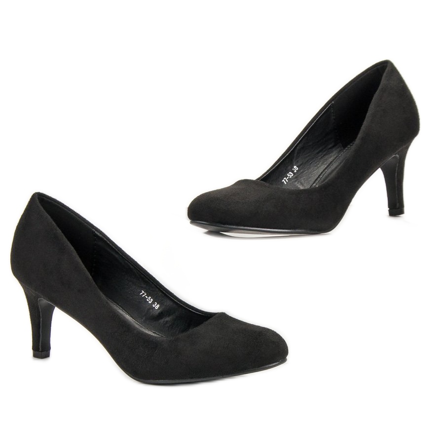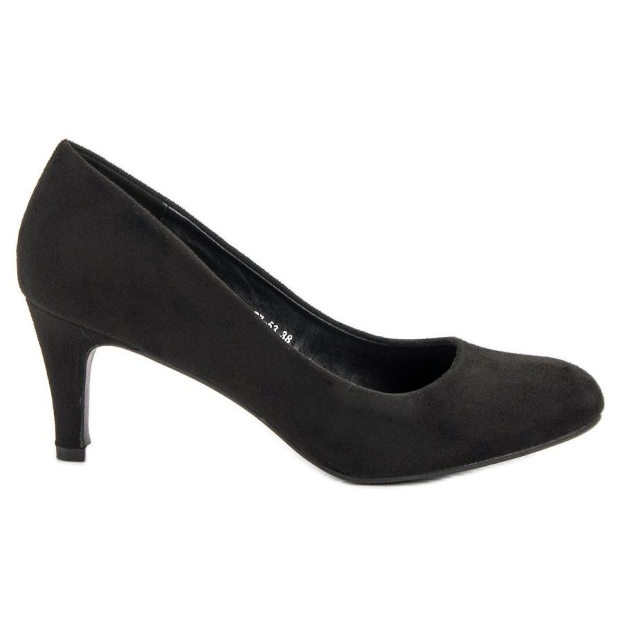 Tyto lodičky jsou vyrobeny z vysoce kvalitní ekologické semišové kůže a vyznačují se sytě černou barvou, která dodává třídu a šik. Jejich pohodlí při nošení zajišťuje měkký materiál a zabudovaná vyztužená pata, která nohu stabilizuje. Výška podpatku je 7 cm, díky čemuž jsou boty štíhlejší a zároveň dostatečně pohodlné na dlouhodobé nošení.