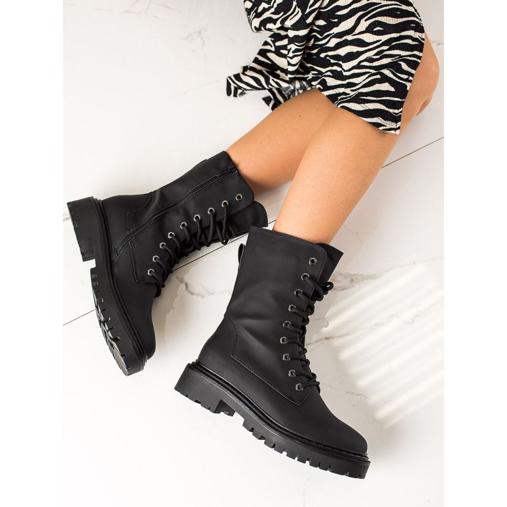Černé workery Erynn se perfektně hodí k ležérnímu a rockovému stylu, perfektně se hodí k džínům, sukním a legínám. Horní šířka 24 cm a výška 20 cm předurčují tyto kozačky pro různé typy nohou. Zip a dodatečné šněrování jsou praktické detaily, které nejen usnadňují jejich nazouvání, ale také dodávají charakter celému stylingu.