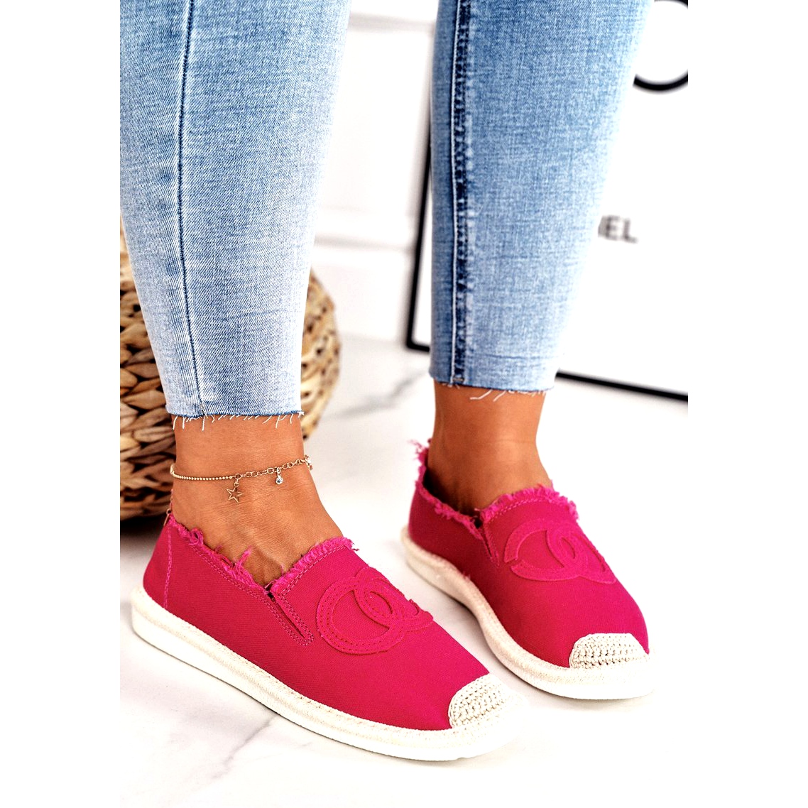 Představujeme klasické dámské espadrilky PS1 v intenzivním odstínu fuchsie. Tyto stylové boty jsou perfektní volbou pro ženy, které oceňují pohodlí a módní vzhled. Espadrilky jsou vyrobeny z vysoce kvalitní látky, díky čemuž jsou lehké a vzdušné, díky čemuž jsou ideální pro teplé dny.