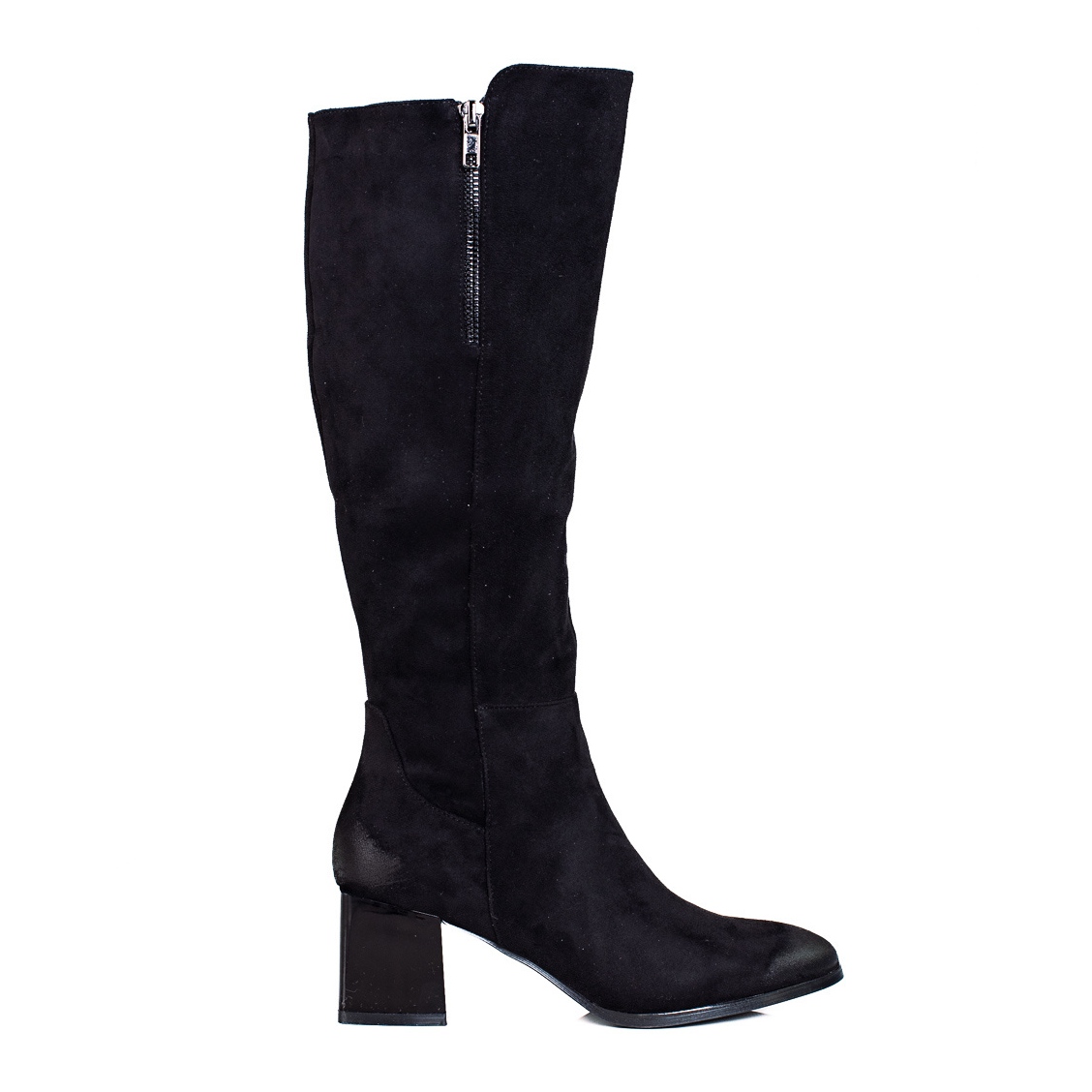 Boty Potocki mají vybudovanou vyztuženou patu, která zajišťuje stabilitu a podporu při nošení. Kulatá špička a klasický střih dodávají půvab a díky subtilnímu 6 cm vysokému podpatku jsou tyto boty pohodlné na každodenní nošení i na večerní výlety. Horní výška 38 cm sahá ke kolenům, což zvýrazňuje postavu a nohy působí štíhlejším dojmem.
