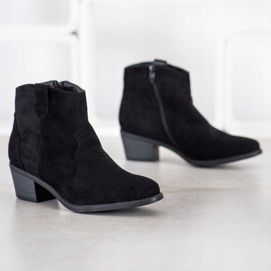 Kovbojské boty mají kulatou špičku, která zajišťuje pohodlí při nošení a také zateplení, díky čemuž se skvěle hodí do chladnějších dnů. Zip umožňuje snadné nazouvání a vyzouvání a zabudovaná a vyztužená pata dodává stabilitu. Výška svršku 10-11 cm a podpatek 5,5 cm ve tvaru kvádru dělají boty jak elegantní, tak pohodlné pro každodenní nošení.