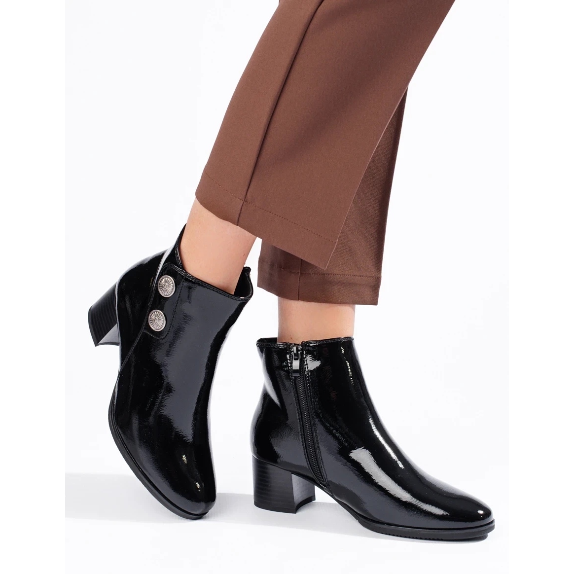 Inna marka Klasické lakované dámské kotníkové boty černá