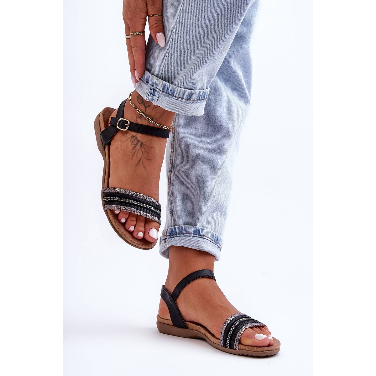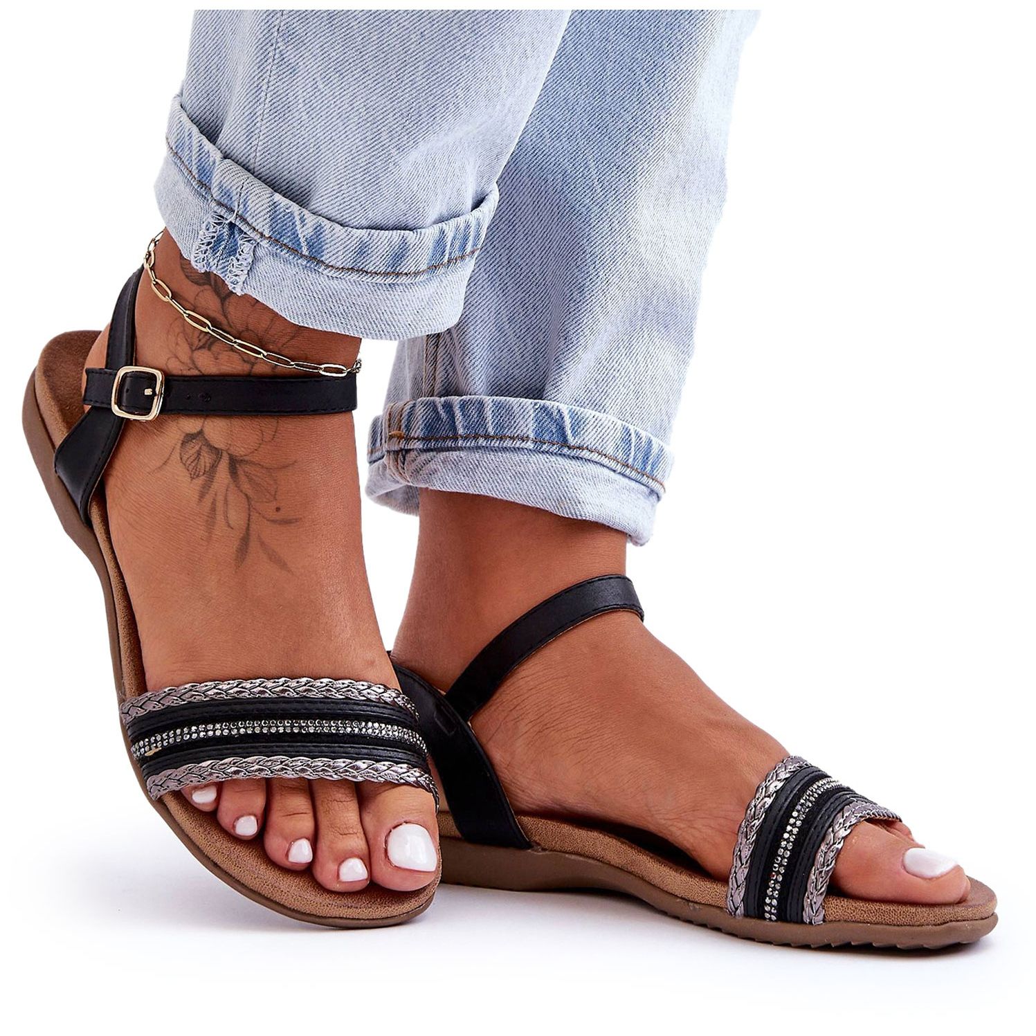 S.Barski Klasické ploché sandály pro ženy černé S.Barski 6708 černá