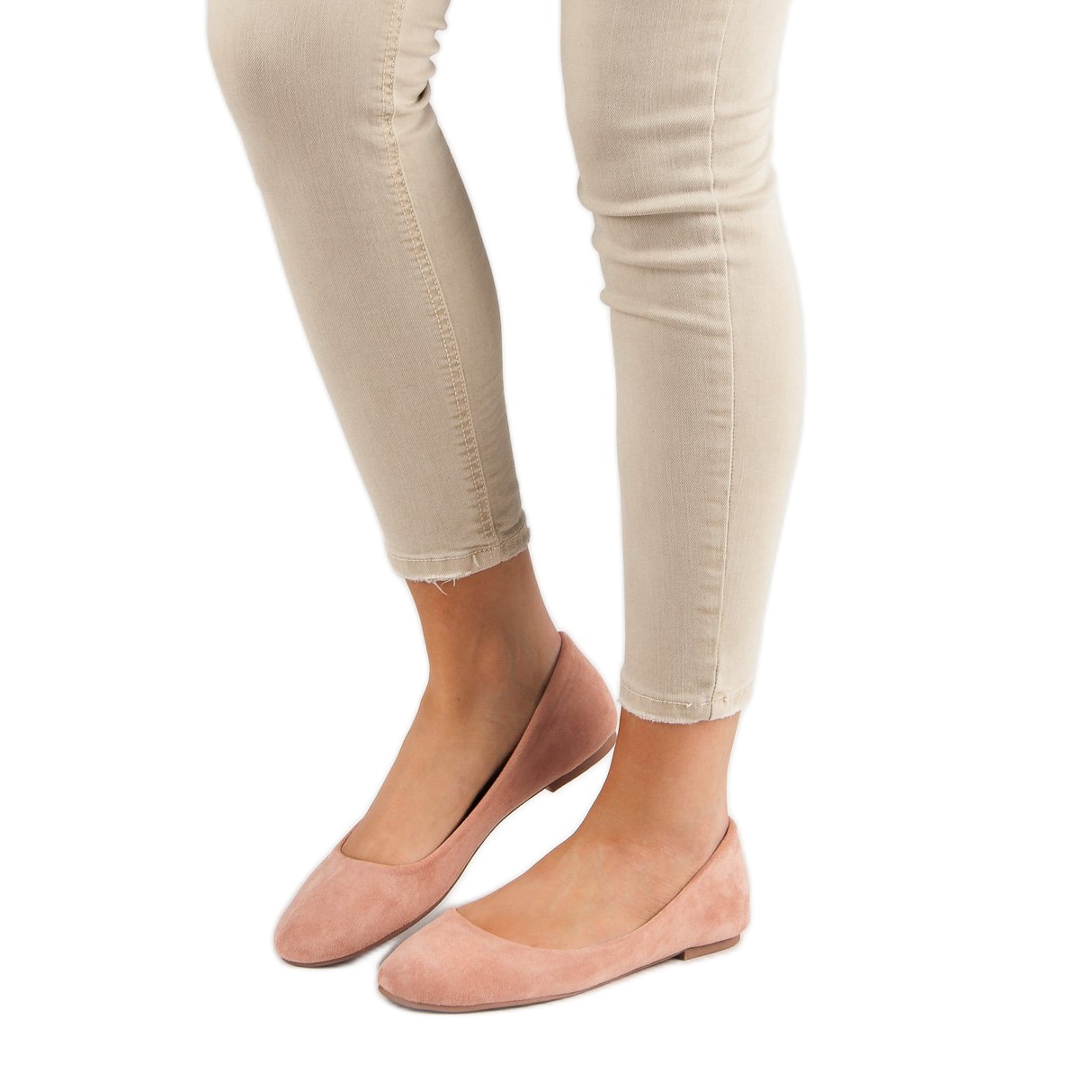 Tyto balerínky vyrobené z ekologického semiše v jemném odstínu pudrově růžové přitahují pozornost svou jednoduchostí a elegancí. Plochá podešev a zabudovaná měkká pata poskytují maximální pohodlí při nošení, takže na nohou můžete trávit dlouhé hodiny bez pocitu nepohodlí. Kulatá špička dodává jemnost a hladká syntetická podrážka je ideální pro různé povrchy.