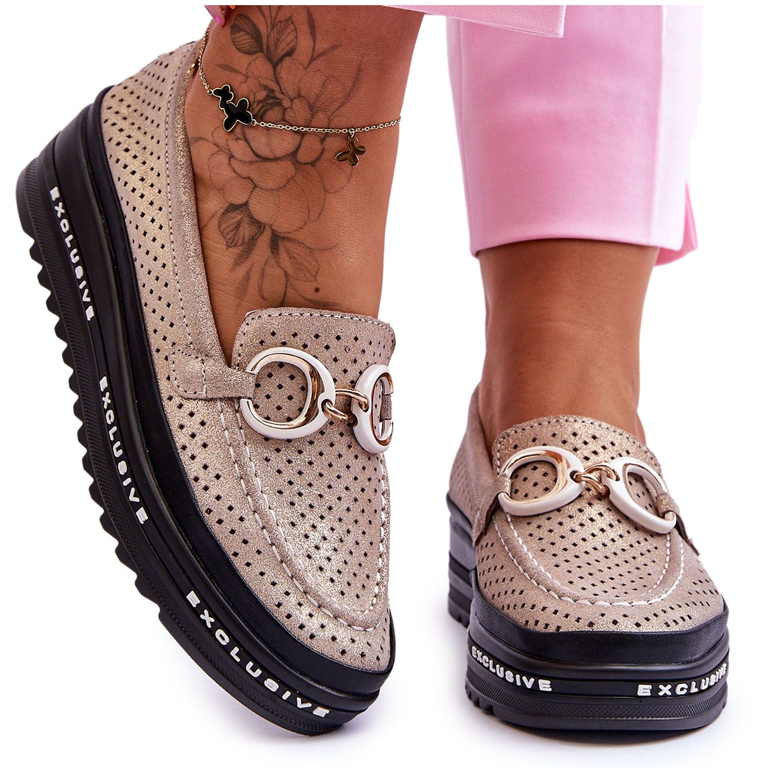 Objevte eleganci a pohodlí, které nabízejí klasické prolamované kožené mokasíny S.Barski v módní zlaté barvě. Tyto extrémně stylové dámské boty jsou pečlivě vyrobeny z vysoce kvalitní přírodní kůže, která zaručuje nejen odolnost, ale i komfort nošení. Prolamovaný vzor svršku jim dodává moderní charakter a jsou tak ideální volbou pro různé příležitosti.