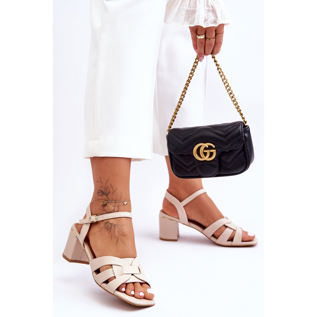 Klasický, univerzální model mlhavých sandálů v teplém béžovém odstínu je nutností pro jarní/letní sezónu. Vyrobeno z vysoce kvalitní ekologické kůže - externě a uvnitř (vložení) - zajistit prodyšnost a pohodlí i v nejteplejších dnech. Jemné popruhy na přední straně a otevřený styl přidání čtvercového nosu a stabilní post 6,5 cm vysoký jemně zvyšuje postavu, aniž by se vzdal pohodlí chůze. Připevnění spony vám umožní dobře přizpůsobit botu s nohou.