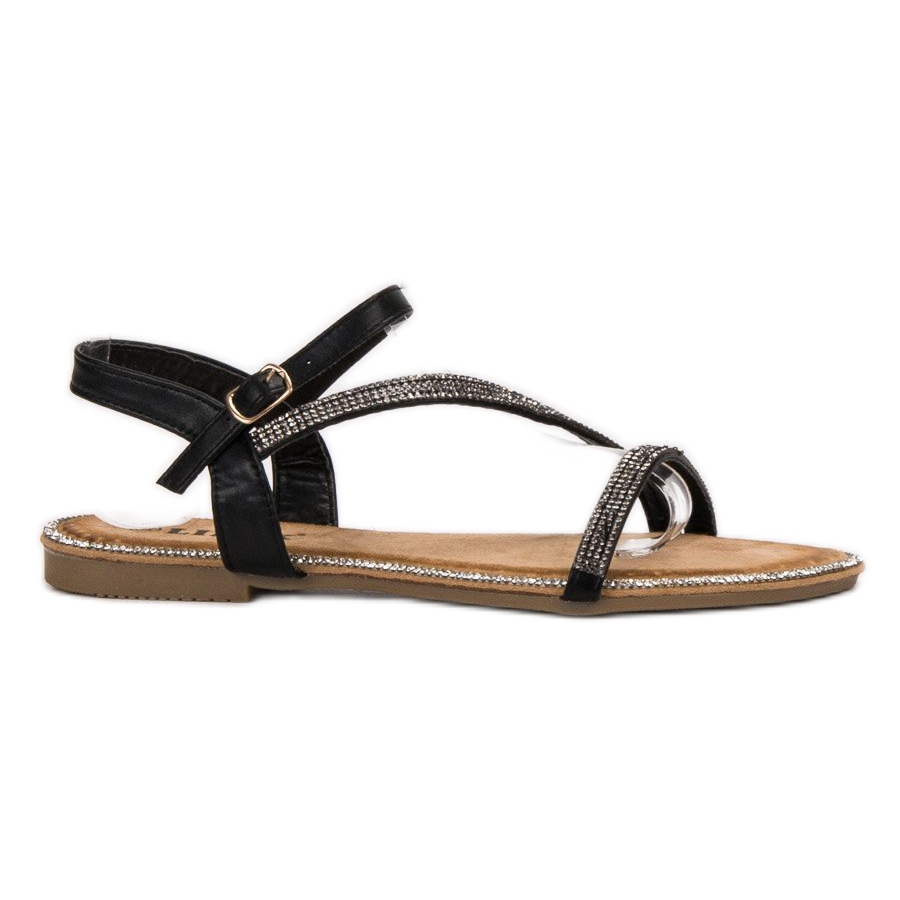 SHELOVET SHELOVET Klasické sandály s kubickým zirkonem černá
