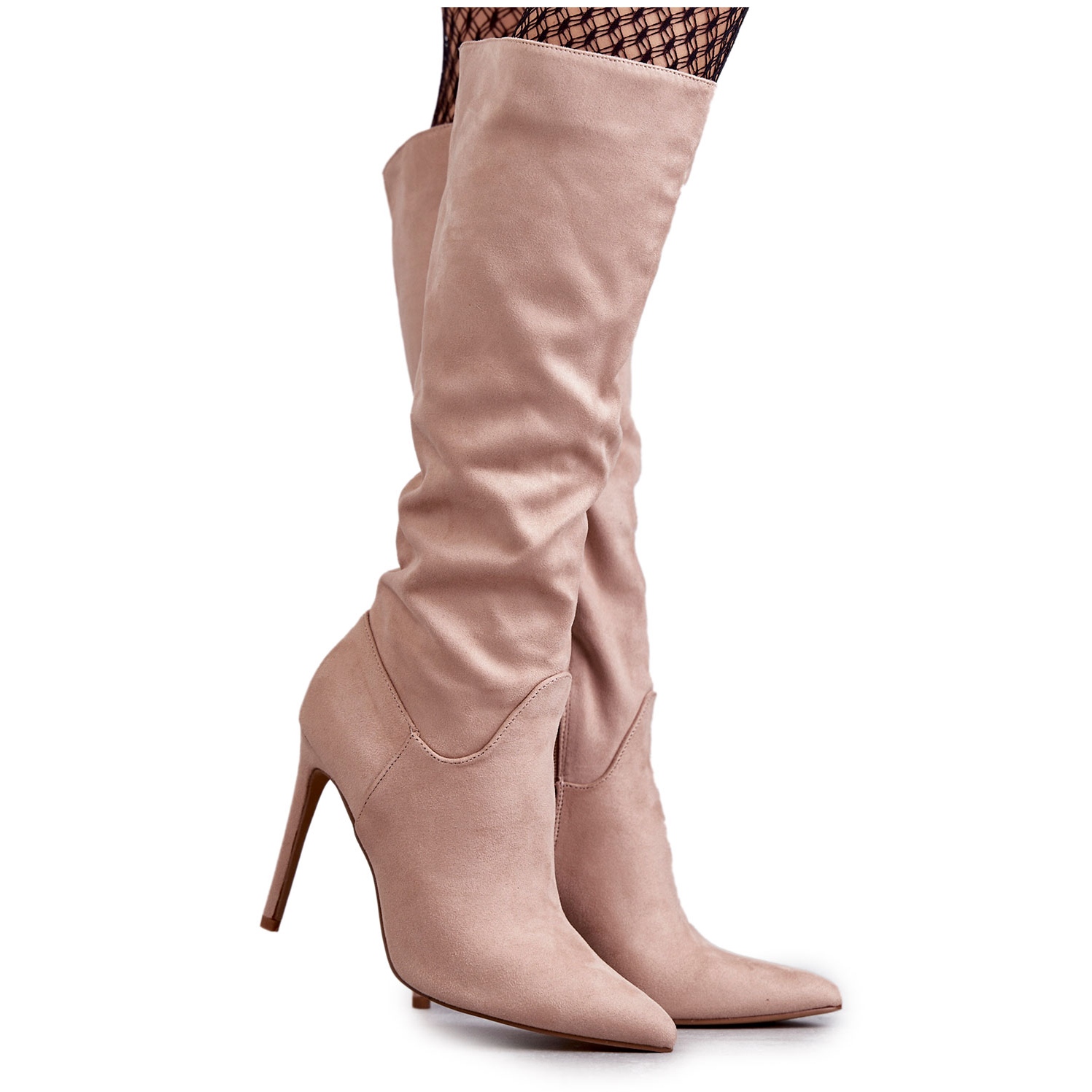 Podrobnosti: Klasické semišové kozačky na vysokém podpatku Béžová Ameya béžový