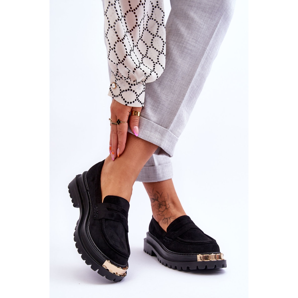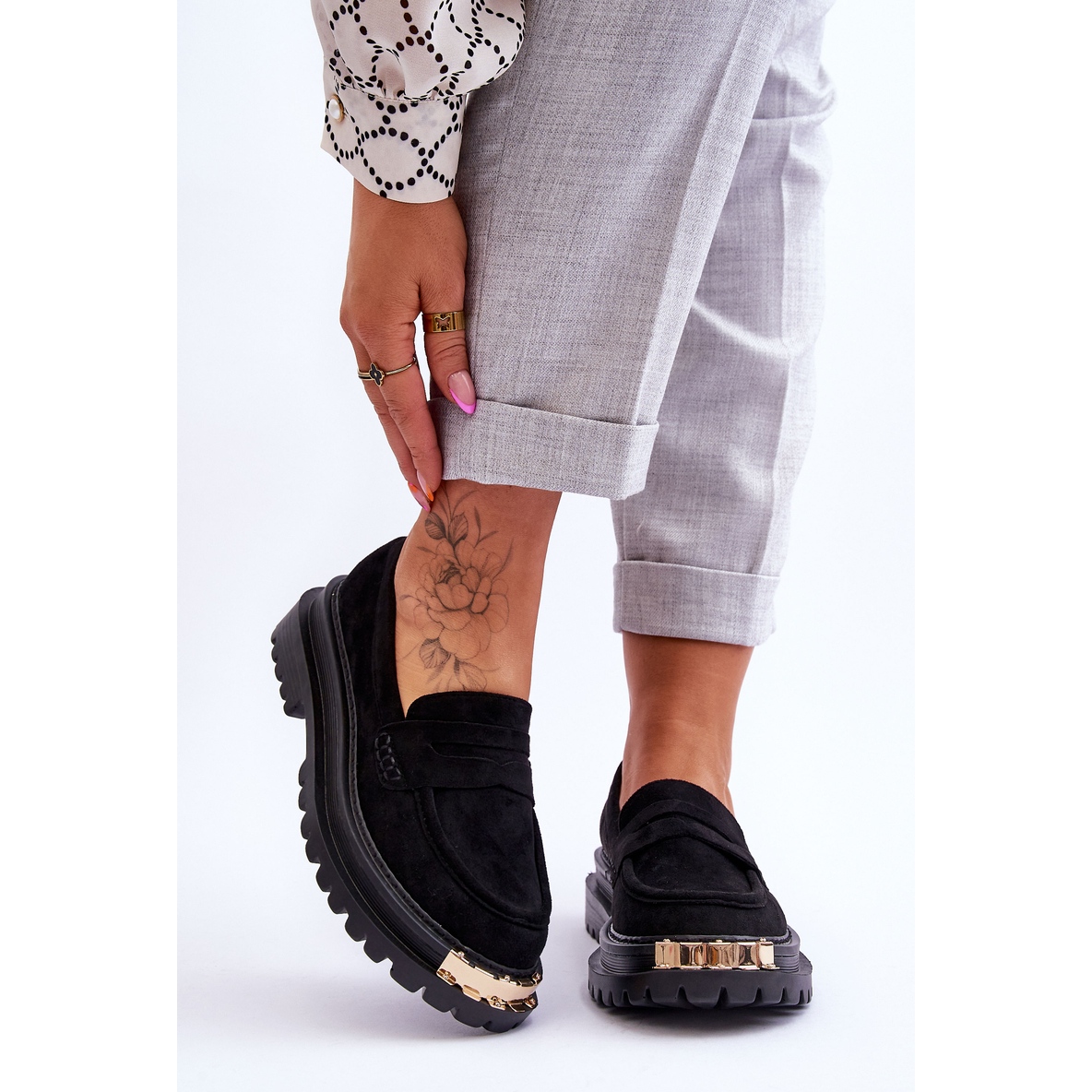 Objevte eleganci a pohodlí s klasickými semišovými mokasínami s černým zdobením Monaro! Tyto jedinečné boty jsou vyrobeny z ekologického semiše, díky čemuž jsou nejen stylové, ale také šetrné k životnímu prostředí. Na přední straně platformy jsou jemné, dekorativní prvky, které jí dodávají jedinečný charakter.