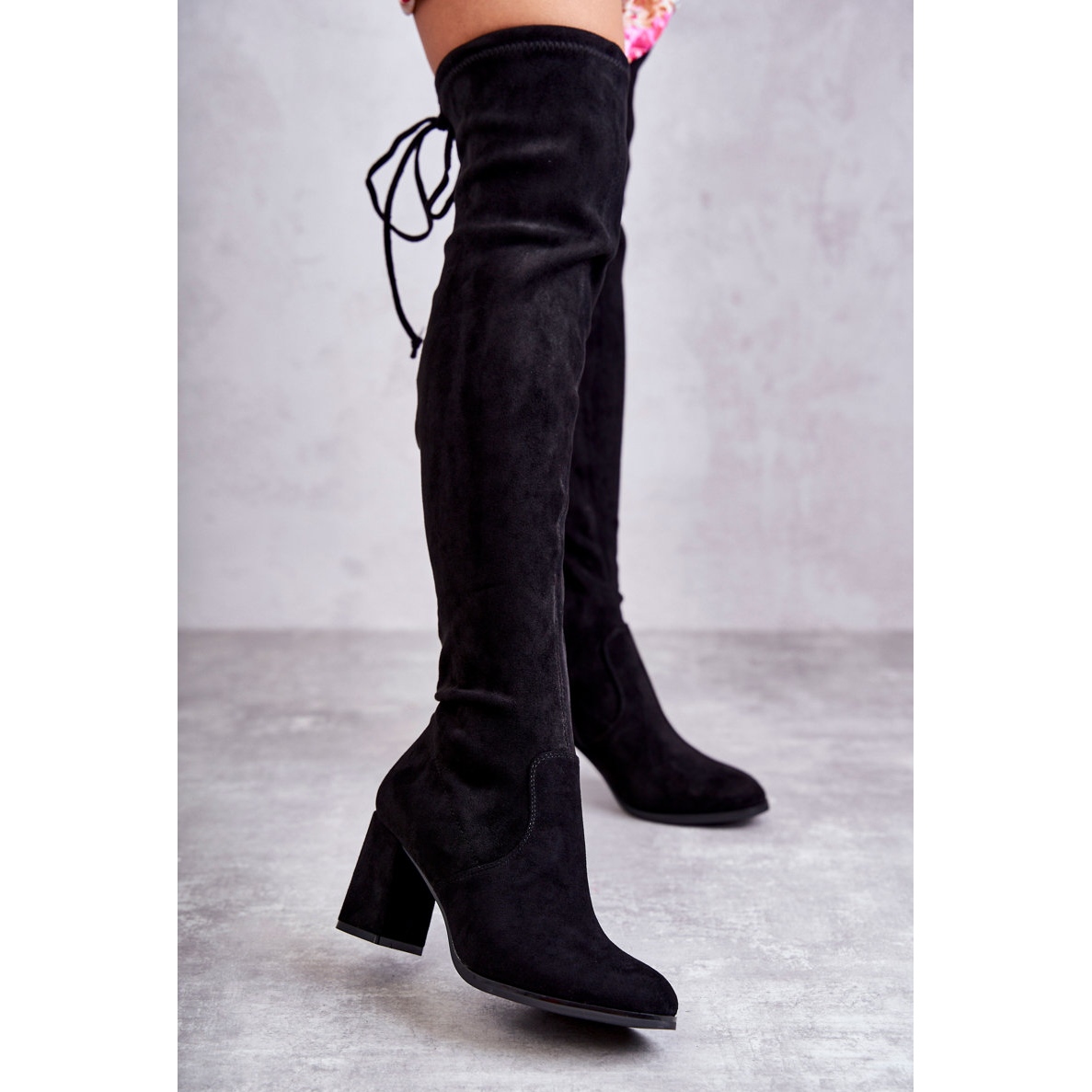 Podrobnosti: FE1 Klasické semišové stehenní boty Clarissa Black černý