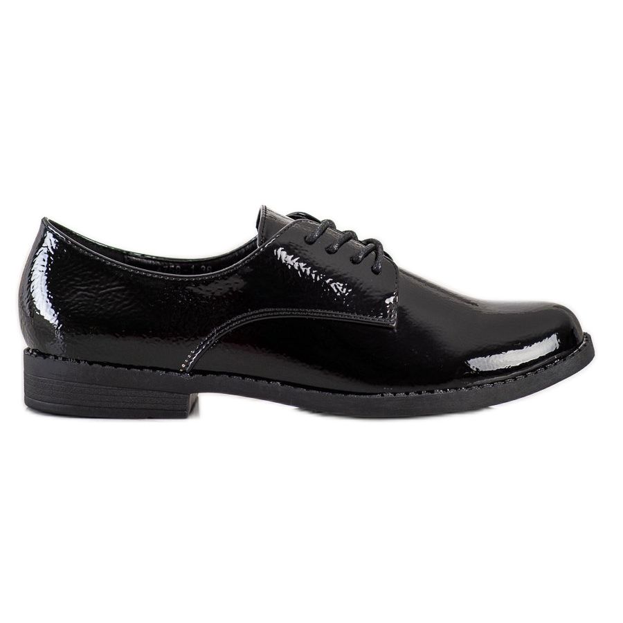 Klasické šněrovací boty SHELOVET v černé barvě jsou elegantní nabídkou pro každou ženu, která si cení stylu a pohodlí. Boty vyrobené z kvalitního materiálu imitujícího přírodní kůži se vyznačují lakovaným povrchem, který jim dodává styl.