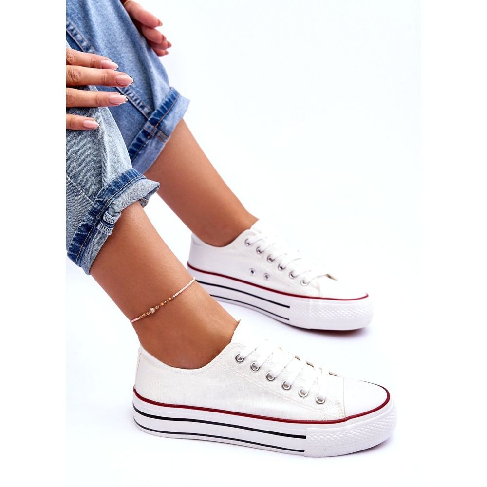 Klasické nízké tenisky na platformě White Jazlyn jsou ideální volbou pro ženy, které hledají styl i pohodlí. Tyto krajkové tenisky vyrobené z vysoce kvalitního textilního materiálu kombinují nadčasový design s moderním přízvukem, což je masivní platforma s výškou 3,5 cm. Díky gumovým šlehačům je obuv nejen odolná, ale také nesklip, což zajišťuje stabilitu při chůzi.