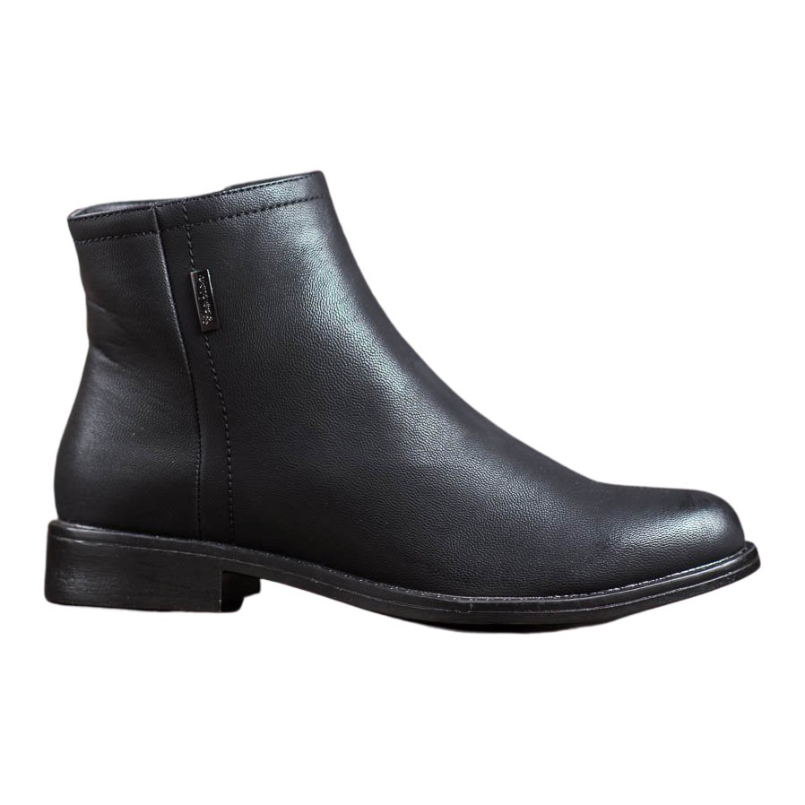 Boty mají na vnitřní straně zip, díky kterému se snadno nazouvají i zouvají. Plochý 3 cm vysoký podpatek zajistí pohodlí i během dlouhých dnů a hladká syntetická podešev zaručí stabilitu a trakci na různých površích.