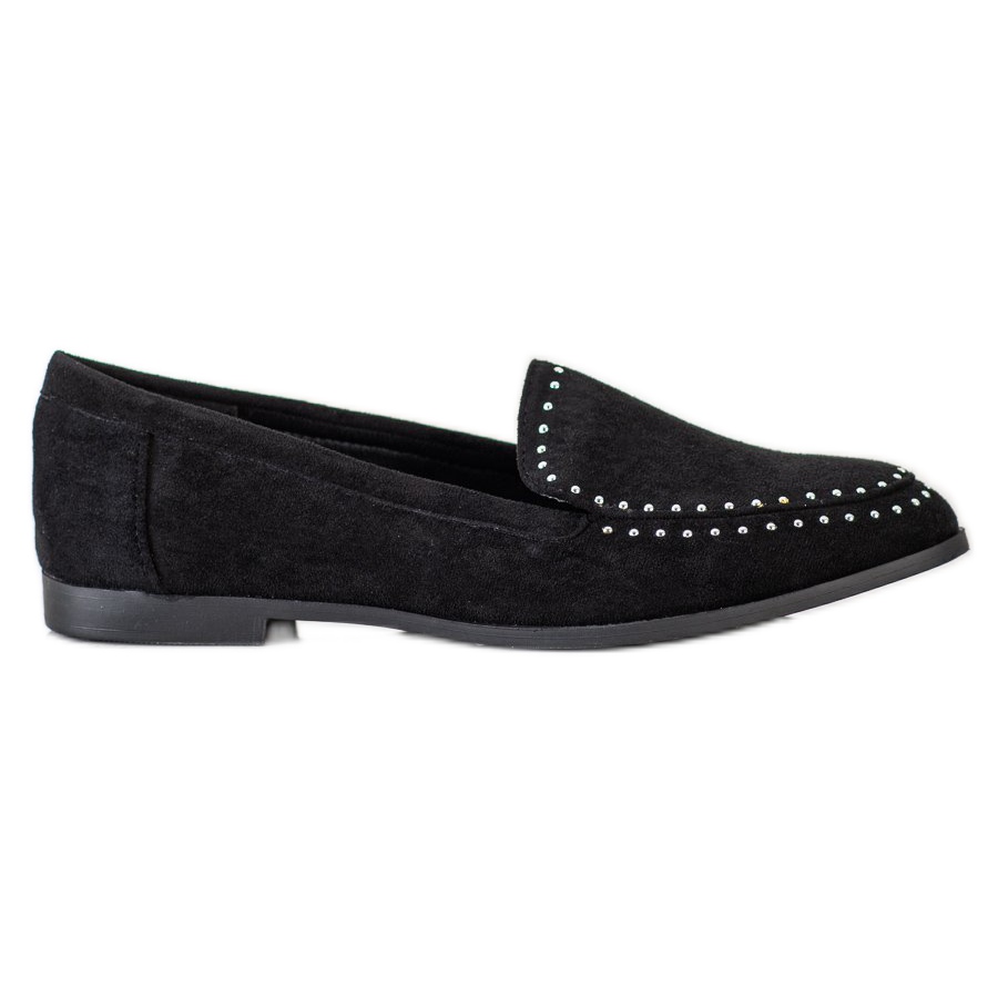 Vyrobené z vysoce kvalitní imitace semiše, tyto pány vypadají extrémně šik a díky jejich černé barvě se hodí k mnoha stylům. Podpatek je uzavřený a měkký, takže se pohodlně nosí po celý den. Další výhodou jsou stříbrné ozdoby v podobě kamínků, které dodávají obuvi moderní a elegantní charakter.