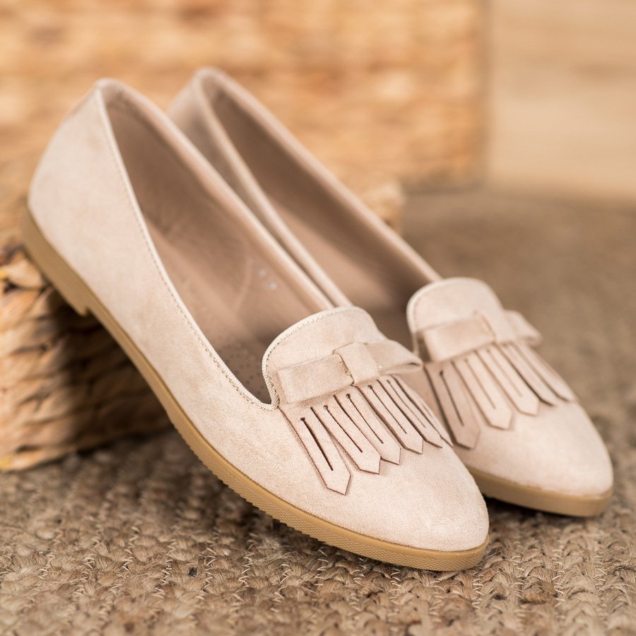 Představujeme klasické hnědé semišové Lords od Coura, které dodají eleganci každému stylingu. Tyto dámské balerínky vyrobené ze světle hnědé, ekologické semišové kůže, kombinují styl a pohodlí. Vyrostlé, zaoblené špičky s ozdobnou mašlí a třásněmi jsou ideální pro různé příležitosti.
