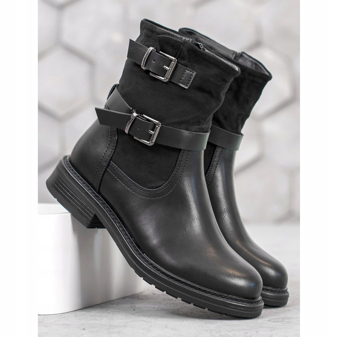 Objevte módu a pohodlí v jednom z nejlepších modelů sezóny – klasické dělnice J. Star v elegantní černé barvě. Tyto stylové dámské boty jsou vyrobeny z nejkvalitnějších materiálů, včetně ekokůže s přídavkem imitace semiše, díky čemuž vynikají nejen svou estetikou, ale také odolností.
