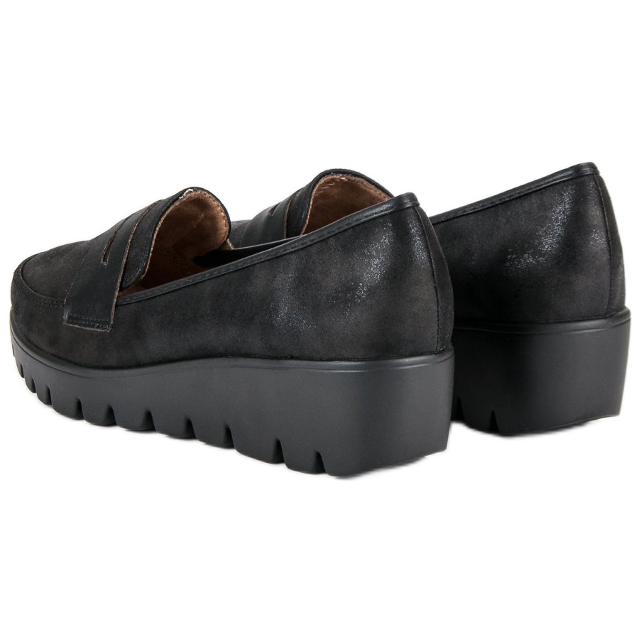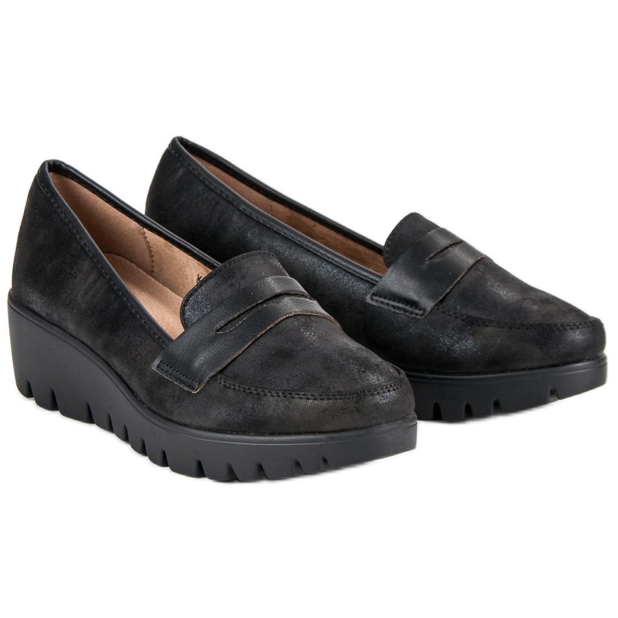 Objevte eleganci a pohodlí s černými mokasíny na klínku od Kylie. Tyto stylové nazouvací lodičky s výškou podpatku 5 cm a platformou 2 cm splní požadavky každé moderní ženy, která si cení jak módního vzhledu, tak pohodlí při nošení.