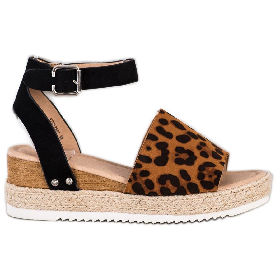 Kylie Kylie Klínové sandály s leopardím potiskem hnědý černá