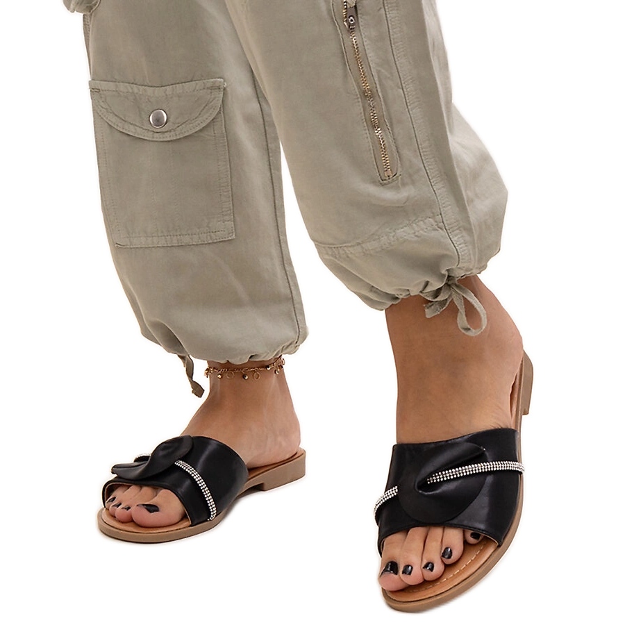 Seznamte se s žabky zdobenými pásem s amarari zirkony v elegantní černé barvě. Je to perfektní volba pro horké letní dny, kombinující módní design a pohodlí nošení. Díky kulatému špičce a vložené struktuře s gumovými pruhy, nasazení a sundávání klapků je velmi jednoduché.