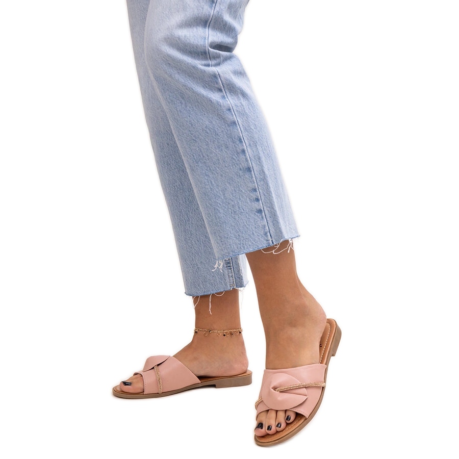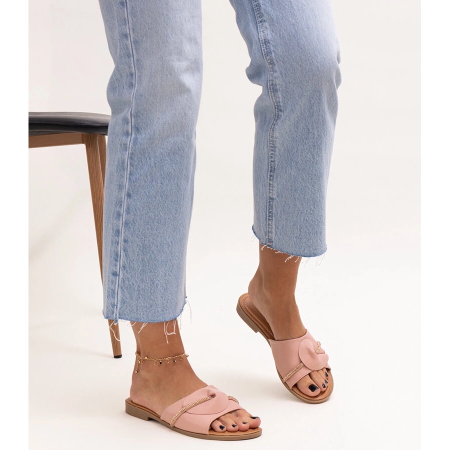 Čepice zdobené pásem s růžovými amari zirkony jsou skvělou volbou pro letní dny, které kombinují pohodlí a módní design. Díky skluzu a kulatému nosku tyto žabky zajišťují výjimečné pohodlí po celý den. Stylový popruh zdobený elegantními zirkony jim dává jedinečný charakter, díky čemuž je každou stylizační záři.