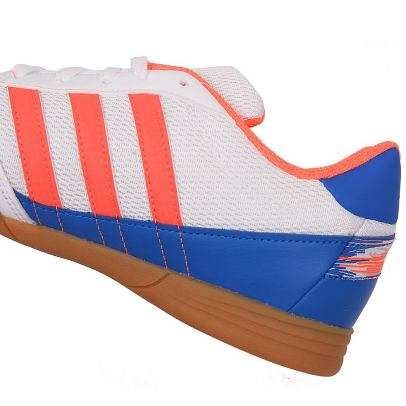 Adidas Super Sala J IN Jr FV2633 je model, který kombinuje moderní design s funkčností. Jejich atraktivní, vícebarevný styling v odstínech bílé, modré a oranžové jistě osloví chlapce i dívky.