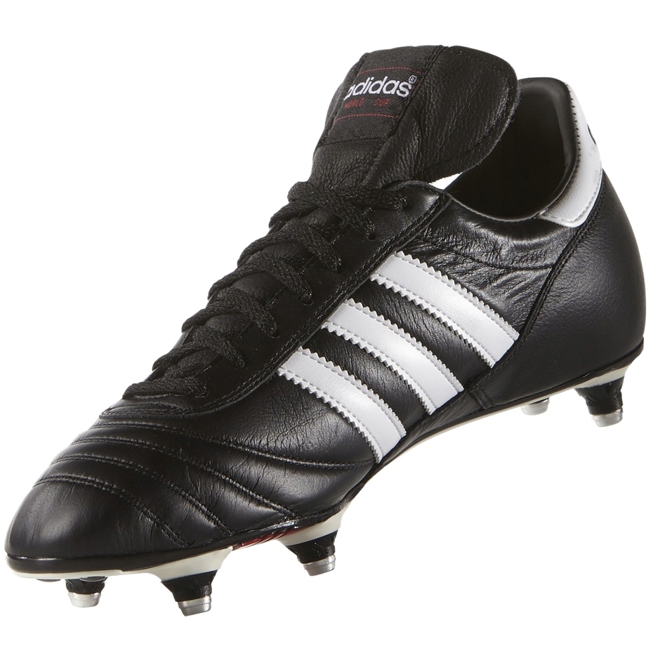 Adidas World Cup SG jsou nadčasové kopačky navržené pro hráče, kteří oceňují pohodlí, přesnost a odolnost. Černá přírodní klokaní kůže zaručuje vynikající pocit z míče a perfektní padnutí a podrážka SG s vyměnitelnými kolíky funguje dobře na měkkých, vlhkých hřištích.