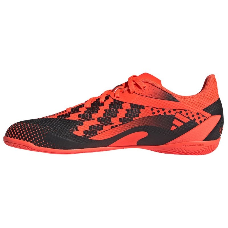 Boty jsou k dispozici v energické oranžové barvě s červenými akcenty, díky kterým na hřišti vyniknou. Vyztužení paty navíc zvyšuje pohodlí a podporu během intenzivního tréninku nebo zápasu.