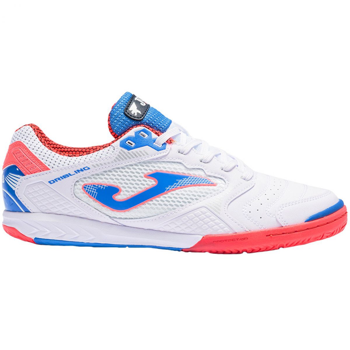 Kopačky Joma Dribling M 2102 In Sala jsou výbornou volbou pro všechny fotbalové fanoušky, kteří hledají pohodlí a výkon na aréně. Tyto nízké tenisky dostupné ve stylové barevné kombinaci modré, bílé a oranžové kombinují moderní design s funkčností.