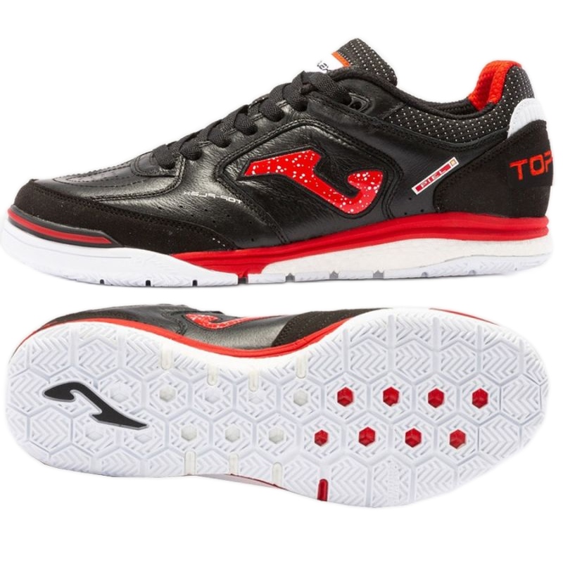 Joma Top Flex Rebound 2301 in - Half -in Men's Hallows, pevně porovnávané v černé barvě s červenými akcenty. Nízká, krajka -up řez poskytuje při hraní v hale několik nohou a plnou svobodu pohybu.