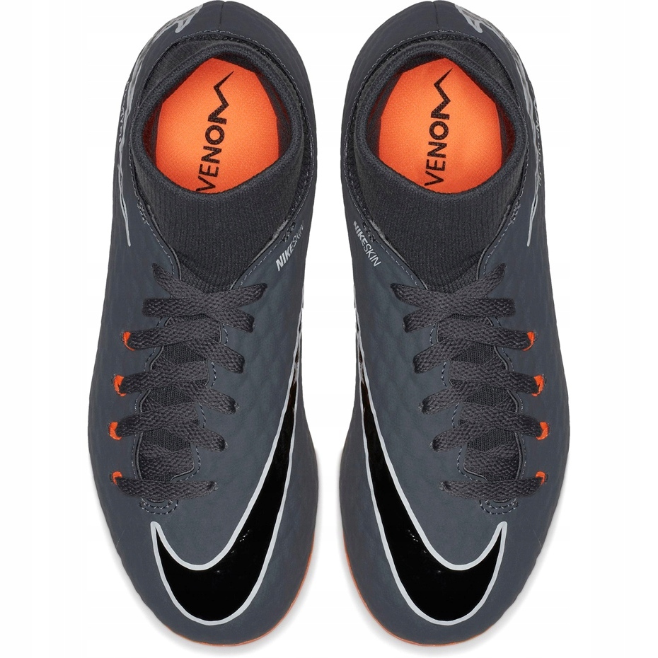 Nike Hypervenom Phantom 3 Academy DF FG Jr (AH7287 081)-Multiově zbarvené šedé grafitové Lanks určené pro mladé hráče, kteří očekávají dynamiku, odpovídání a kontrolu na přirozených površích.