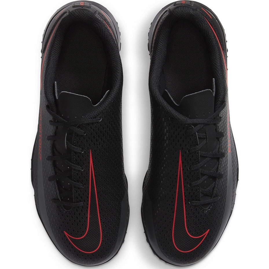 Nike Jr Phantom GT Club TF CK8483 060 Football Shoes - Junior návrh z kolekce Black X Chile Red Pack, vytvořený pro hraní na umělých površích Orlik. Klasický, černý design je kombinován s funkčními řešeními, která pomáhají mladým hráčům ovládat míč a přesné procházení.