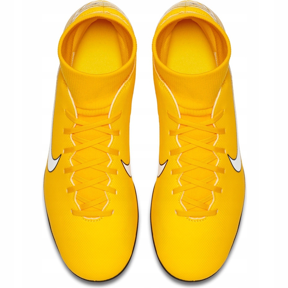 Moderní juniorské dopravní zácpy z linie Mercurial určené pro rychlou hru, změnu směru a dynamického vedení míče. Superfly 6 Club Neymar Jr. Kombinuje odpovídající dynamický fit límec s lehkým, syntetickým horním - ideálním pro mladé hráče hrající rekreačně na přírodních a umělých površích.