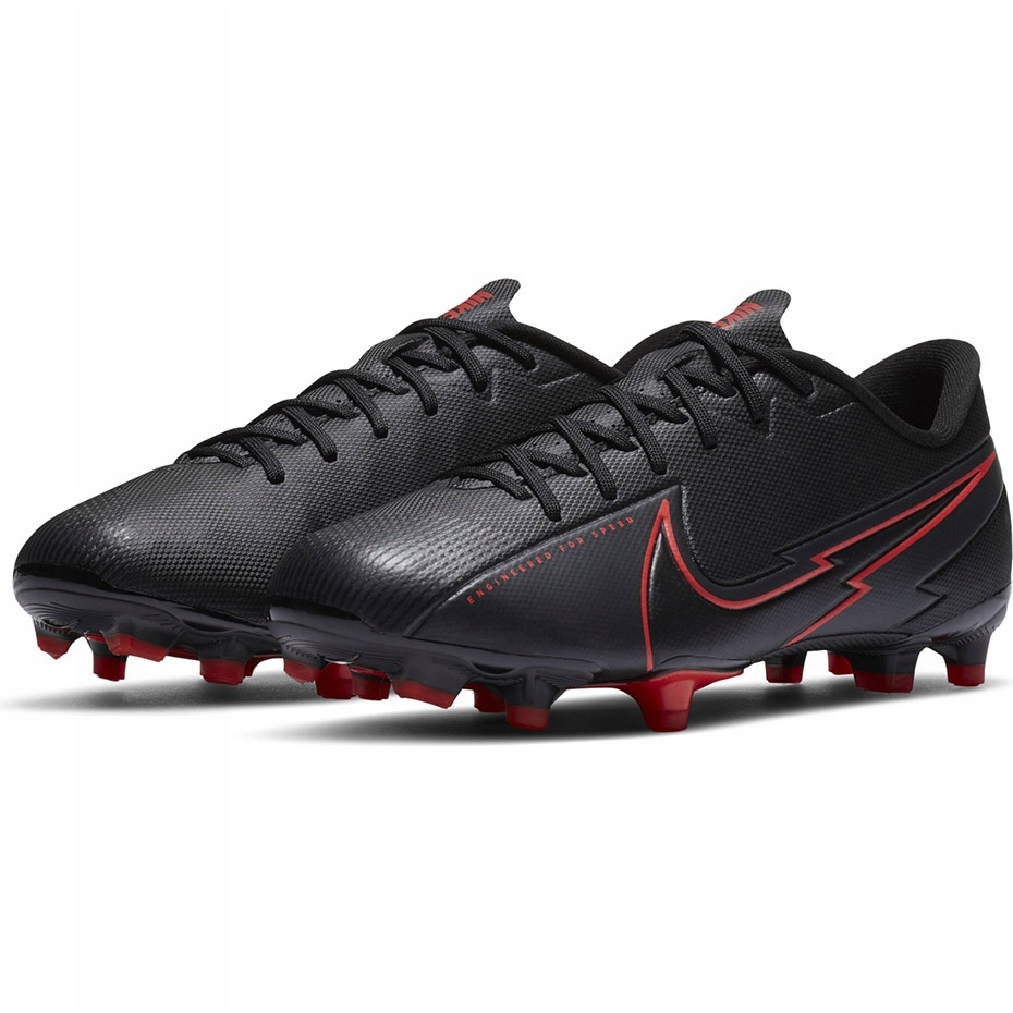 Vytvořeno pro juniory, kteří chtějí hrát rychle a sebevědomě. Model akademie Mercurial Vapor 13 ze sbírky černé X Chile Red Pack kombinuje lehkost a přesnost kontaktu s míčem, ideální pro hraní na přírodním a umělém travnatém povrchu (FG/mg).