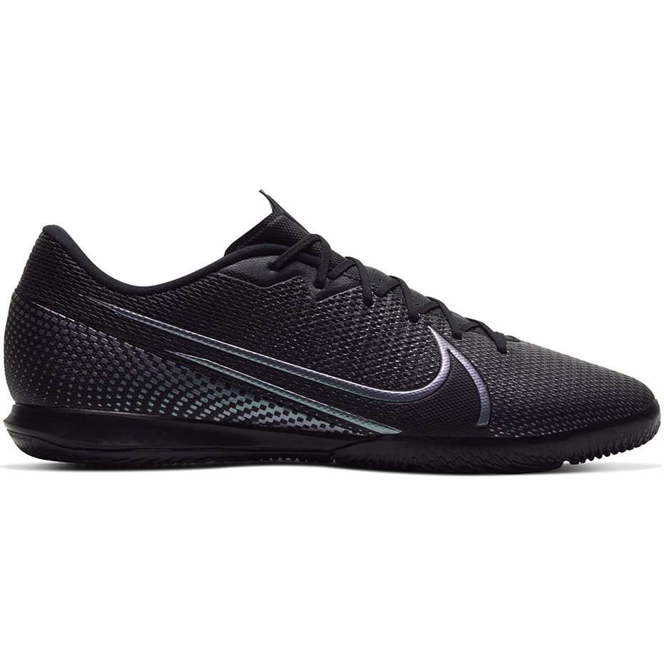 Pánská fotbalová obuv Nike Mercurial Vapor určená pro hraní ve sportovních halách. Pocházejí z kolekce Kinetic Black. Svršek je vyroben z měkké syntetické kůže, je zodpovědný za odolnost a lepší pocit. Reliéfní vzor umožňuje lepší kontakt s míčem. Neznačkující gumová podrážka nezanechávající stopy zajišťuje přilnavost na parketách. Tváří řady Mercurial je Cristiano Ronaldo. Úroveň: poloamatér.