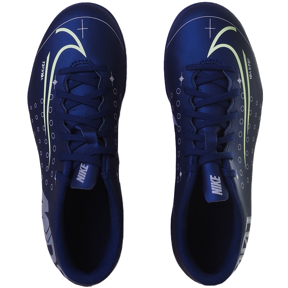 Dynamický, stylový a pohodlný - Junior Model Nike Mercurial Vapor 13 Club MDS byl vytvořen pro mladé hráče, kteří se chtějí rozhodnout o průběhu hry. Boty pocházejí ze sbírky Mercurial Dream Speed (MDS), určené pro rychlost, přesnost a důvěru při výstřelu. Navy modrá svršek s reflexními detaily a jedinečnou grafikou zdůrazňuje agresivní charakter modelu - vlevo viditelná písmena MDS na pravém čísle 001.
