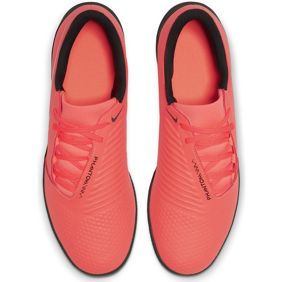 Nike Phantom Venom Club Boty, vytvořená pro hraní na syntetickém rozteči (Turf), kombinují pohodlí s technickými řešeními, která usnadňují ovládání míče. Asymetrický šněrovací systém a mikrotexture nahoru Horní zlepšení kontaktu s míčem a polstrovanou stélku a specializovaná podešev zajišťují stabilitu a adhezi během rychlých frází a výstřelů.