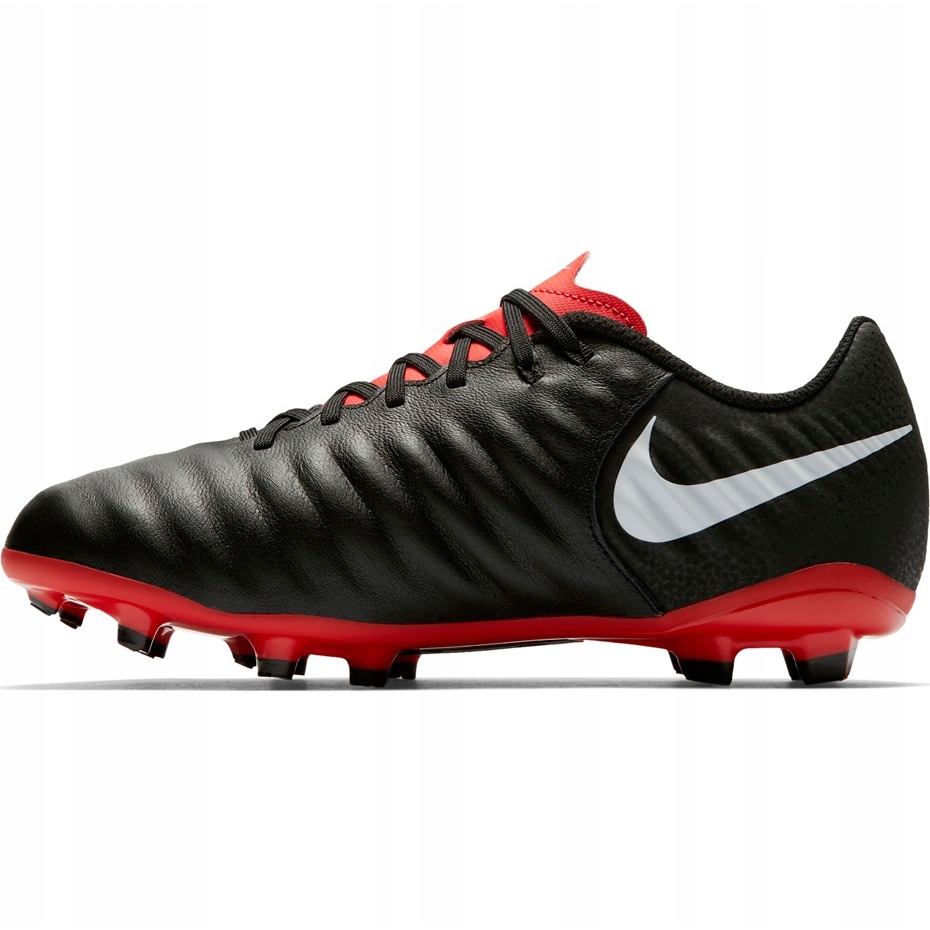 Junior Nike Tiempo Legend 7 z vyvýšené sbírky betonu jsou univerzální dopravní zácpy určené pro mladé hráče hrající na přírodním a umělém travnatém povrchu. Měkký svršek se strukturou telecí kůže zlepšuje kontakt s míčem a speciálně navržená podešve s plastovými dopravními zácpami zajišťuje určitou adhezi a stabilitu během hry. Model je ideální pro poloamateurské hráče, kteří si cení pohodlí a klasického stylu linky Tiempo.