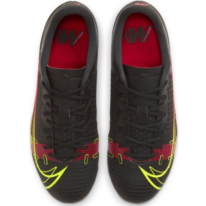 Kopačky Nike Vapor 14 Academy FG/MG Jr CV0811 090 jsou vynikající volbou pro mladé fotbalisty, kteří chtějí rozvíjet své dovednosti na hřišti. Tyto pestrobarevné černé kopačky nejen stylově vypadají, ale nabízejí i řadu funkčních řešení, která zvýší komfort hry.