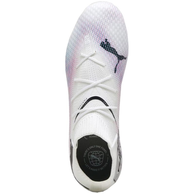 Kopačky Puma Future 7 Pro FG/AG Jr 107728 01 v bílé barvě jsou unikátním produktem z řady Puma určeným mladým fotbalistům, kteří chtějí na hřišti vyniknout nejen svými dovednostmi, ale i stylem. Jedná se o perfektní obuv pro ty, kteří se snaží o profesionalitu a potřebují obuv, která splní jejich očekávání jak při hře na přírodním trávníku, tak na umělém povrchu.