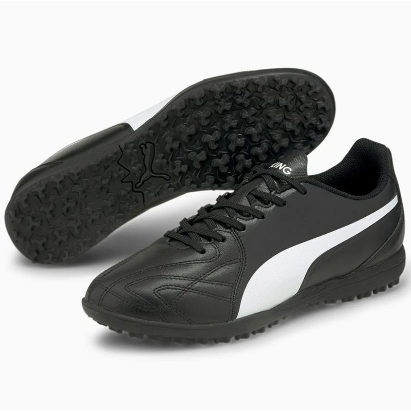 Objevte dokonalost ve hře s kopačkami Puma King Hero 21 TT M Poskytují bezkonkurenční pohodlí díky pečlivě navrženému, symetricky šněrovanému svršku, vyrobenému z vysoce kvalitních materiálů, které se dokonale přizpůsobí noze. Černý klasický povrch s výrazným jazykem a prošíváním na svršku jim dodává elegantní vzhled, perfektní na hřišti i mimo něj.