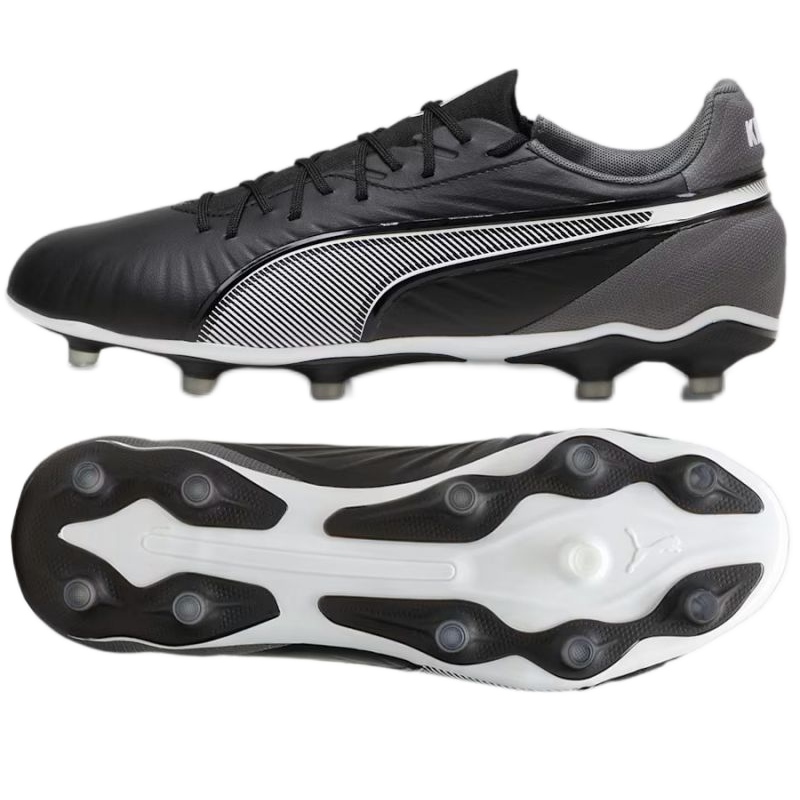 Tyto boty jsou vyrobeny z vysoce kvalitních materiálů, včetně syntetické kůže a tkaniny, nejen funkční, ale také odolné. Klasická černá barva s hnědými akcenty znamená, že PUMA King odpovídá FG/Ag dokonale s každou fotbalovou stylizací.