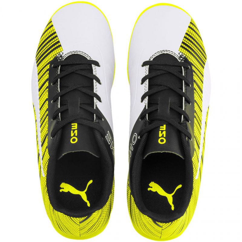 Kopačky Puma One 5.4 IT Jr 105664 04 jsou perfektní volbou pro mladé sportovce, kteří chtějí rozvíjet své dovednosti na krytém hřišti. Tyto vícebarevné boty v odstínech žluté, bílé a černé, které jsou součástí nejnovější kolekce Puma Rush Pas, poskytují nejen stylový vzhled, ale také pohodlí a podporu, která je při intenzivních zápasech klíčová.