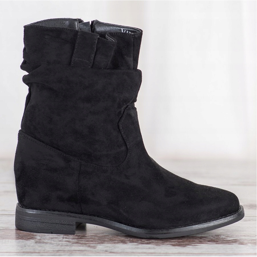 Kovbojské boty VINCEZA v černé barvě jsou elegantním doplňkem, který dokonale zapadá do nejnovějších módních trendů. Tyto jedinečné dámské kotníkové boty jistě okouzlí milovnice stylové každodenní obuvi. Vyrobeny z ekologické semišové kůže poskytují nejen estetický vzhled, ale také odolnost a komfort nošení.