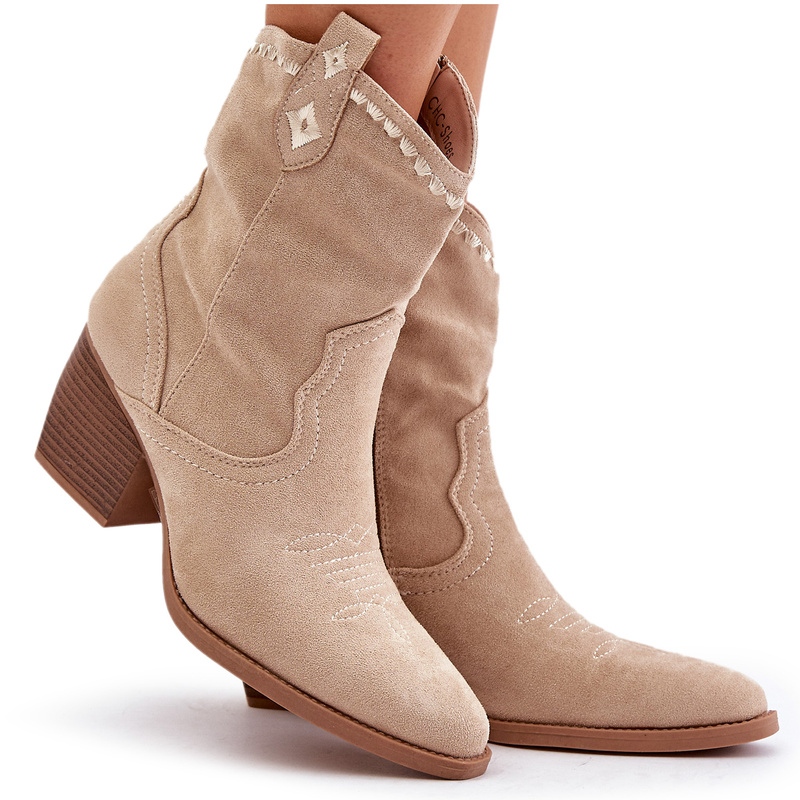 Podrobnosti: Kovbojské boty na vysokém podpatku z eko semiše, světle béžová Narinae béžový