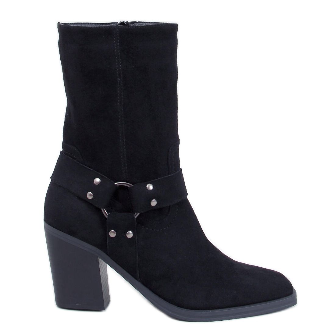 Objevte eleganci a pohodlí v jednom - semišové kovbojské boty Hardin Black! Tyto jedinečné ženské boty jsou charakterizovány vysokým horním a originálním řezem s čtvercovými nástroji, které jim dávají moderní bahno. Upevňování zipu umístěného na boku horní části umožňuje obuv na obuv velmi snadný a pohodlný.
