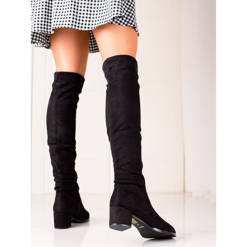 Gogo Gogo Kozačky na nízkém podpatku po stehna černá