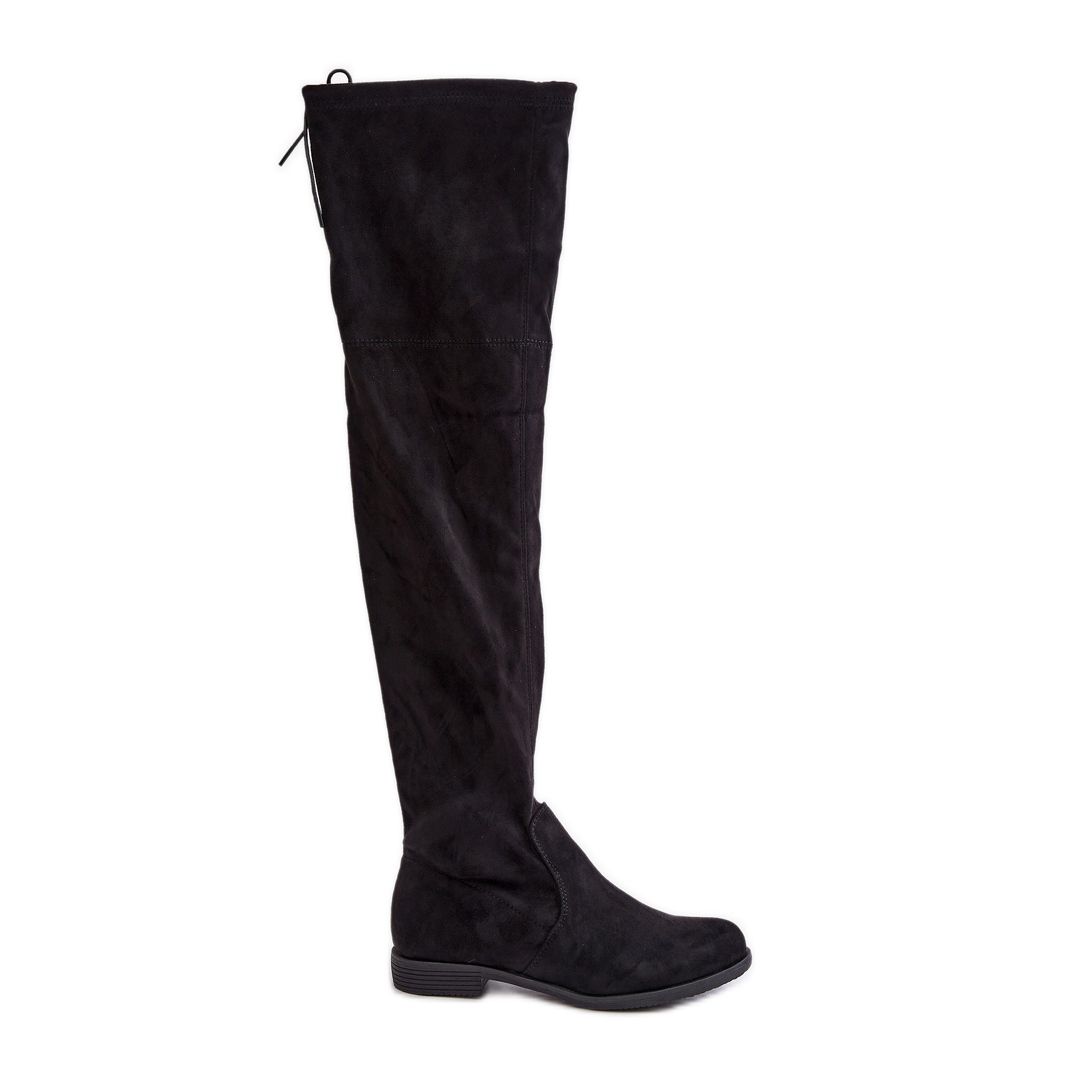 Podrobnosti: Kozačky na plochém podpatku nad kolena vyrobené z ekologického semiše, Black Linnithia černá