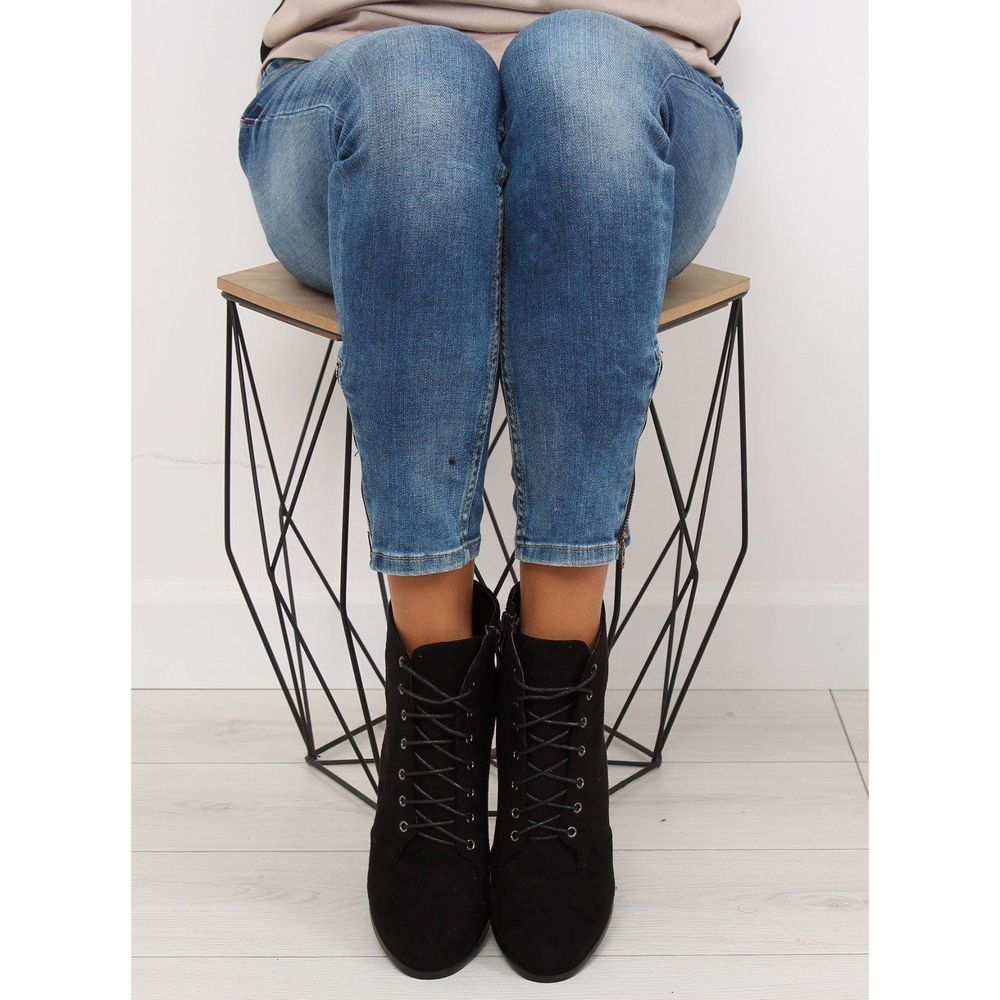 Objevte krásu a pohodlí podzimních dnů s černými botami na stabilním podpatku JA161. Tyto elegantní, šněrovací dámské kotníkové boty, ideální pro chladnější období, jsou synonymem stylu a pohodlí. Vyrobeny z ekologické semišové kůže, spojují moderní design s šetrností k životnímu prostředí.