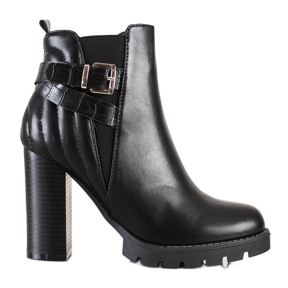 Tyto boty se vyznačují vestavěným, vyztuženým podpatkem a vysokým podpatkem v podobě 10,5 cm bloku, který jim dodává třídu a šik. Vyrobeny z ekologické imitace kůže, jsou nejen módní, ale také šetrné k životnímu prostředí. Vnitřek kozaček je vyroben z textilního materiálu, který zajišťuje pohodlí a teplo v chladnějších dnech.