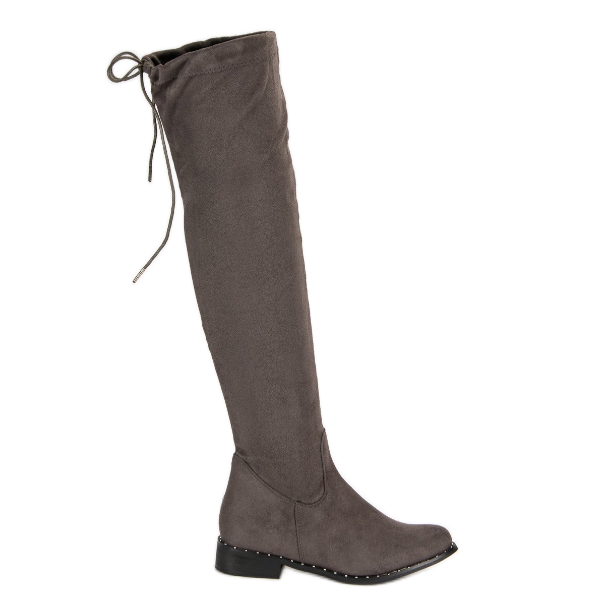 Seastar Seastar Kozačky nad kolena na plochém podpatku šedá